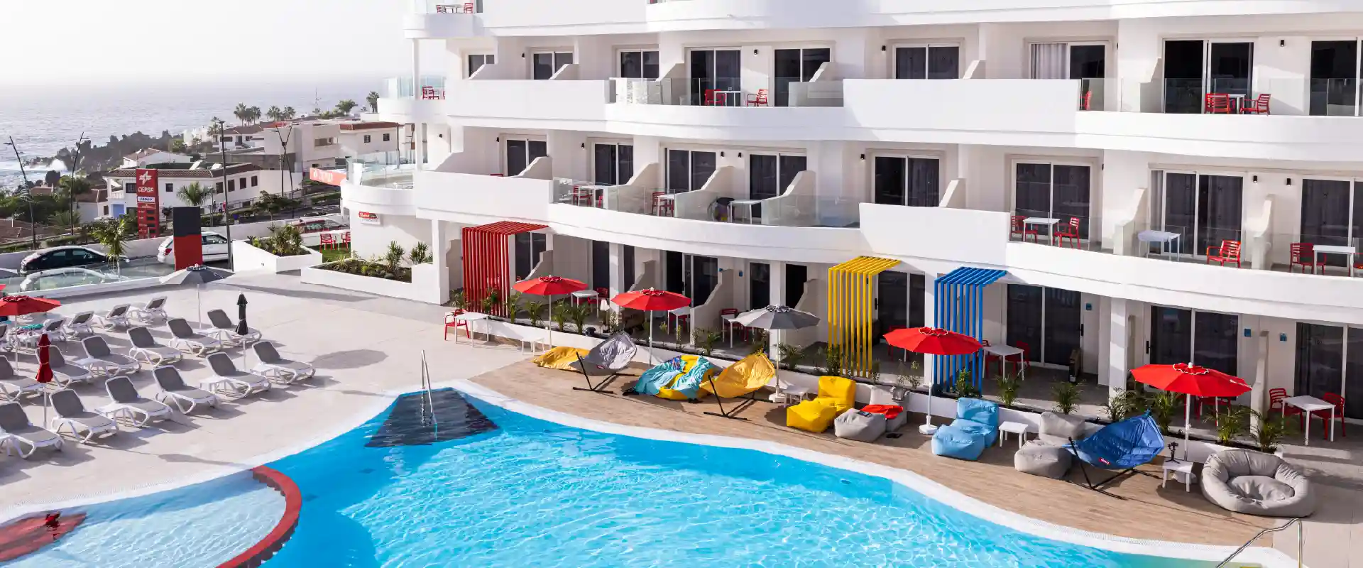 Desconecta en nuestra piscina y solárium con vistas al mar y a La Gomera. Pon tu mente en vacaciones ON y ¡disfruta non stop!